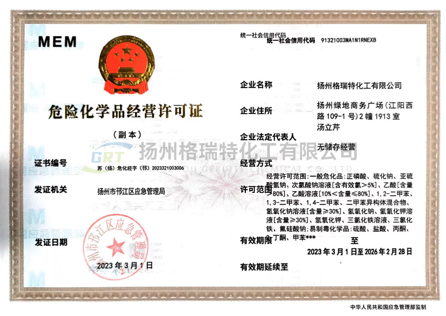 揚(yáng)州格瑞特化工有限公司生產(chǎn)工廠坐落于江蘇省海安縣胡集工業(yè)園區(qū)和海安精細(xì)化工工業(yè)園。總公司成立于1999年,是集科、工、貿(mào)為一體的現(xiàn)代化生產(chǎn)型企業(yè)。專業(yè)致力于水處理劑、紡織印染助劑、化纖油劑等產(chǎn)品的科研、開發(fā)、生產(chǎn)和銷售。總公司占地面積40000m,建有現(xiàn)代化標(biāo)準(zhǔn)廠房,擁有先進(jìn)的生產(chǎn)設(shè)備。年產(chǎn)各類水處理劑系列產(chǎn)品12000噸,紡織印染助劑5000噸,產(chǎn)品12個(gè)系列40多個(gè)品種。總公司注重技術(shù)投入,設(shè)立產(chǎn)品研發(fā)中心和環(huán)保運(yùn)營中心,聘請了多位專家為公司技術(shù)顧問,并和多個(gè)重點(diǎn)院校建立了長期技術(shù)合作開發(fā)關(guān)系,是南通大學(xué)、江南大學(xué)、南京工業(yè)大學(xué)產(chǎn)學(xué)研基地。